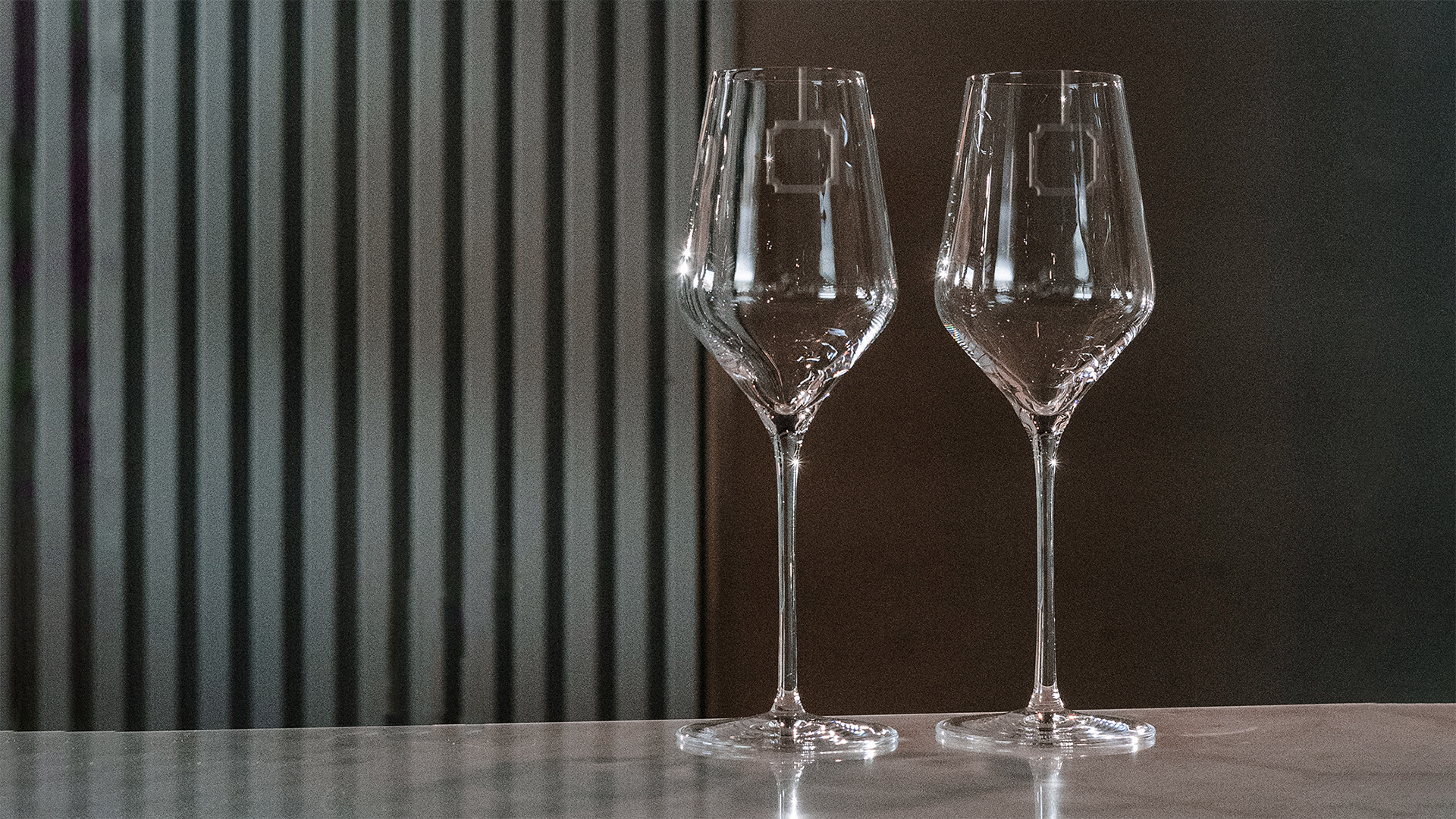 Tea-infused ‘champagne bottle with collar wrap, in-bar advertisement poster, embossed champagne flutes, delivery boxes and tape.
